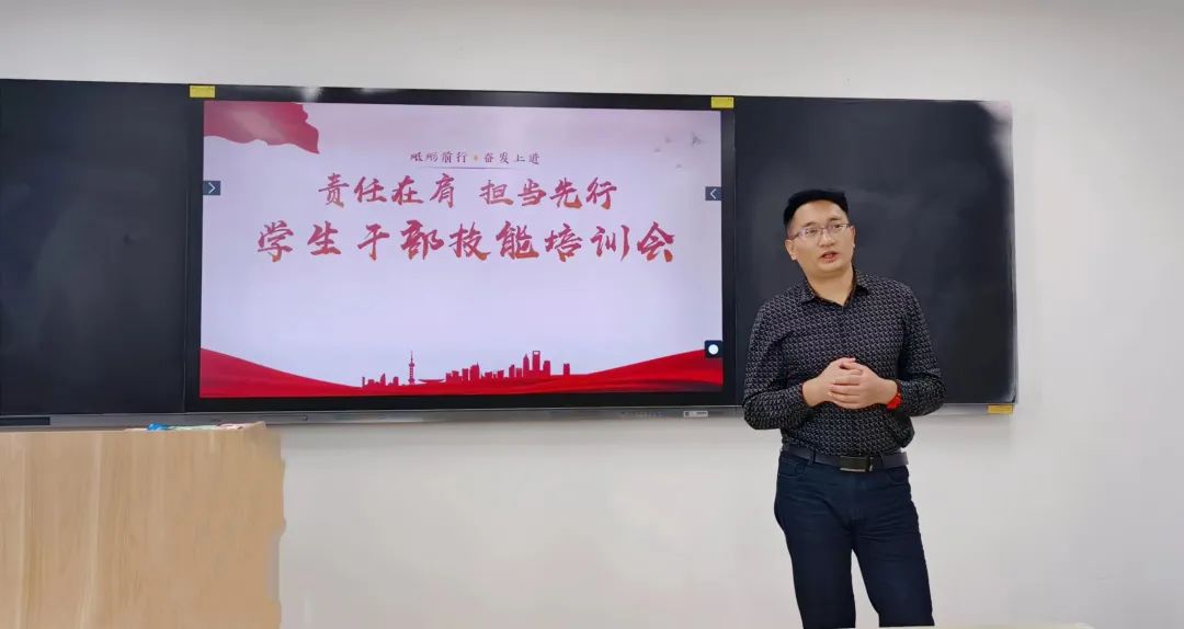为进一步提高医学院团委学生会学生干部的综合素质,树立远大的理想,增强自我教育、自我管理和自我服务的意识,10月17日,医学院于502教室开展“责任在肩,担当先行——学生干部培训会”,由医学院团委书记李元杰主讲,医学院学生干部参加。