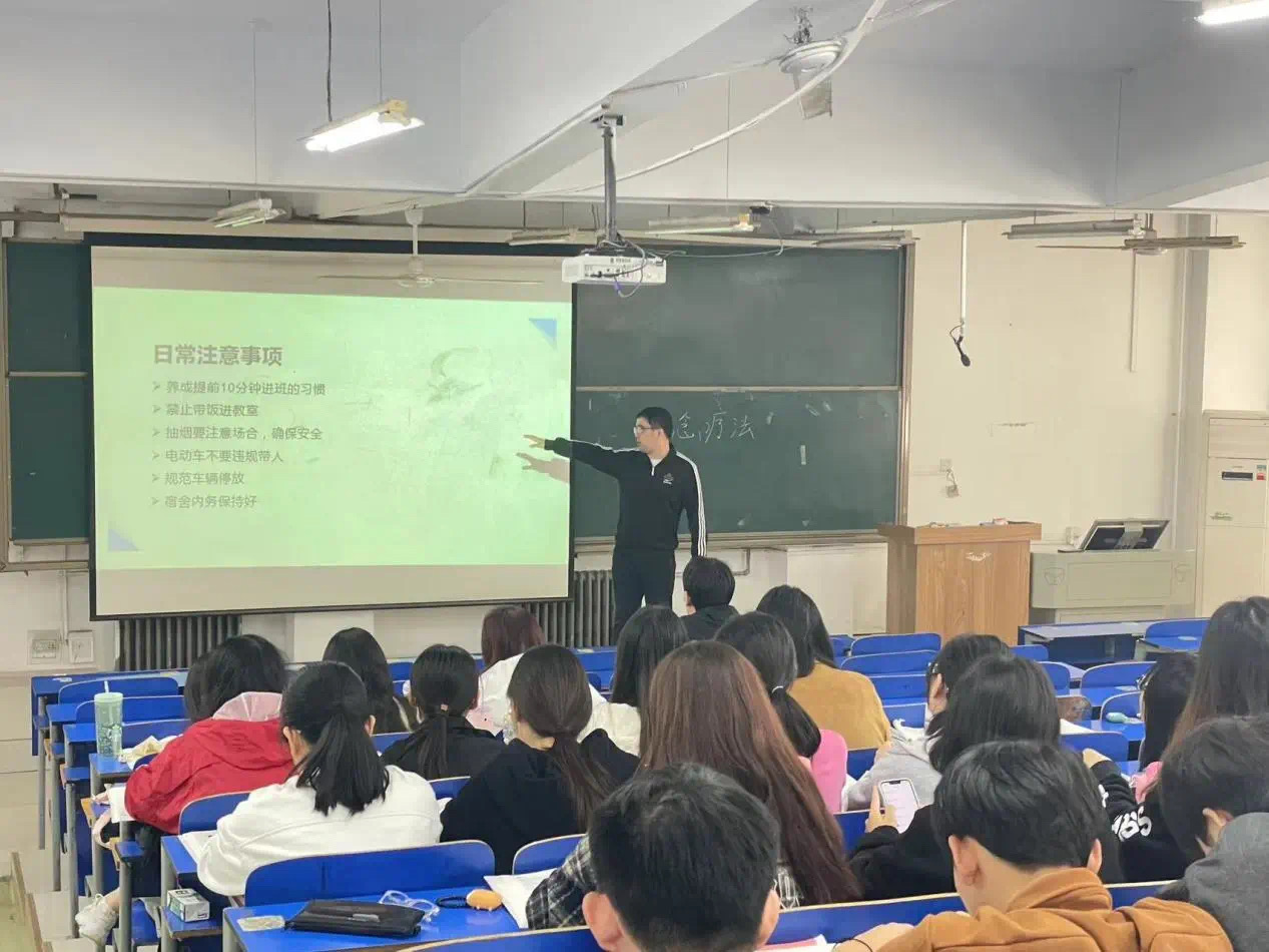 会上,辅导员赵岩岩强调了大学生日常行为规范和安全防范意识的重要性。她强调,第一是加强日常行为规范,杜绝上课带饭、穿拖鞋上课等不文明现象,纪律委员和生活委员要做到严格监管;第二是增强安全意识,包括骑车载人、网络诈骗和宿舍安全用电等,每日在班级群内分享诈骗案例希望认真学习,提高防范意识,班级内要做好用电安全和宿舍内务自查工作;第三是教学楼门口停车问题,应在划定区域规范停车。