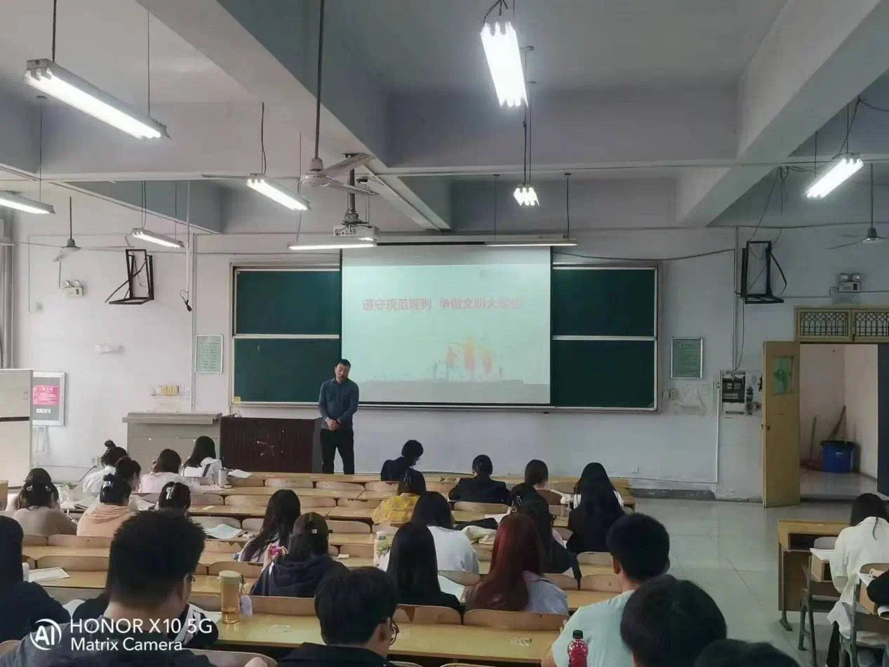 会上,李保栓从严格遵守校规校纪,行车文明,宿舍文明,语言文明等方面进行讲解,引导学生树立文明安全意识,提高大学生的综合素质和文明习惯,确保每一位学生都能在安全的环境中茁壮成长。