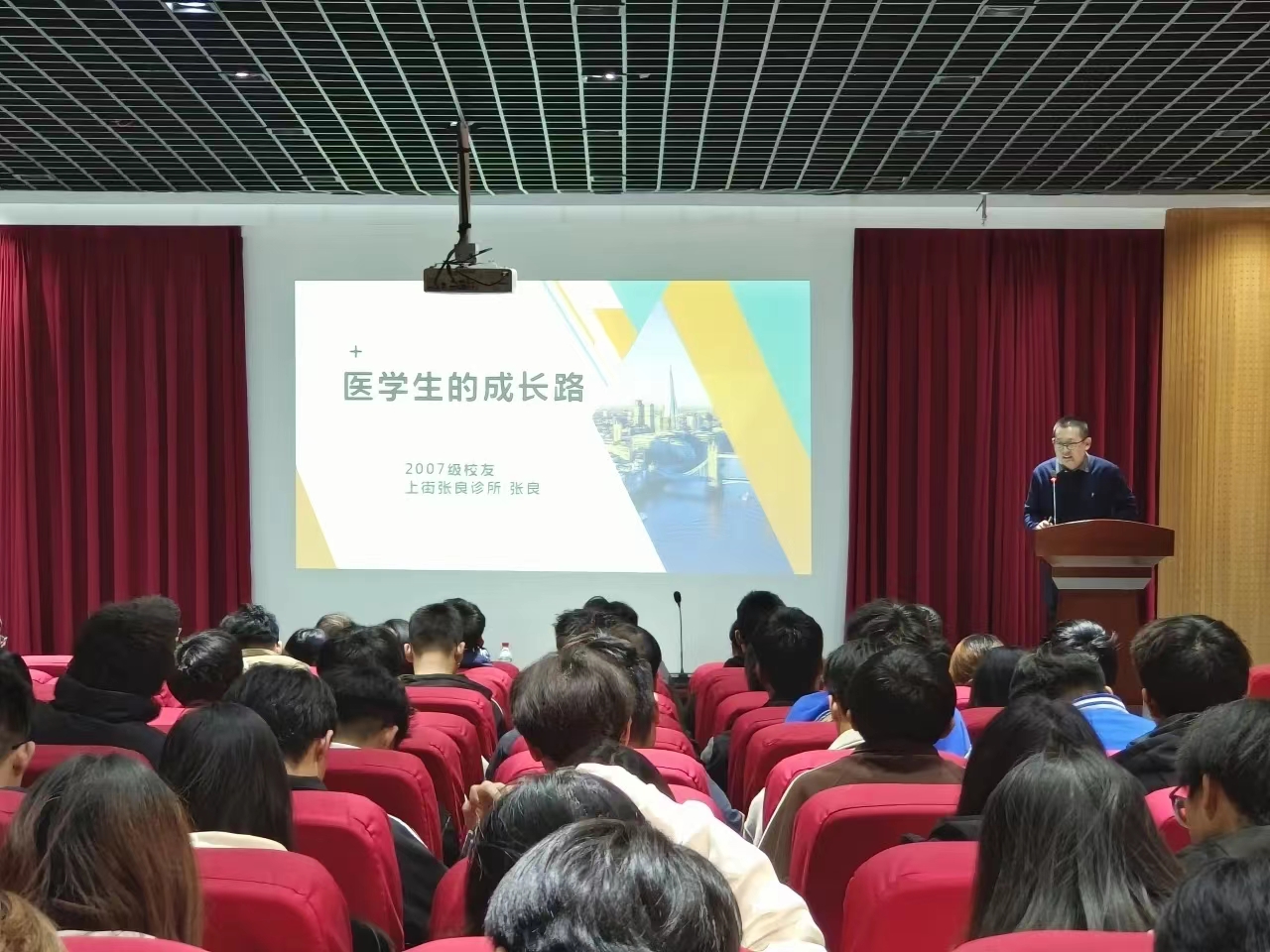 报告会上,张良首先回顾了在母校度过的大学时光。他表示,在医学院的学习让他不仅掌握了丰富的医学知识,更学会了如何成长为一个有责任、有担当的临床医生。接着,他结合自身经历,详细介绍了自己作为医学生的成长历程,毕业后作为临床新人的成长经历,以及创业的初心、目标和诊所运营现状。张良还向在座的学弟学妹提出了几点建议,要珍惜大学时光,做好学业和职业规划,踏实学习,在有限的时间里做有意义的事,在有限的精力下创造更多社会价值。最后,张良为即将到来的古天乐太阳集团城40年校庆送上真切祝福,感谢母校的培育,愿母校桃李芬芳满天下,越办越好。