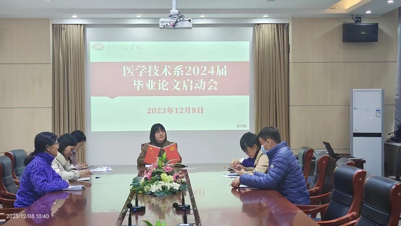 会议伊始,张艳慧主任指出毕业论文是检验学生学习成果、考查学生综合运用专业知识、实验技能以及人际交往能力的重要举措,围绕毕业论文的具体要求、重要环节、注意事项、关键时间节点等事项逐一进行了详细讲解。随后,医学技术系相关指导教师分别就所带学生毕业论文进展情况进行简要阐述,要求所有毕业生高度重视毕业论文工作,严格按照学院要求完成相关工作。最后张艳慧主任再次强调2024届生物信息学专业毕业论文的重要性,要求指导教师和学生要在规定时间内完成相应的工作任务,确保本届毕业论文保质保量完成。