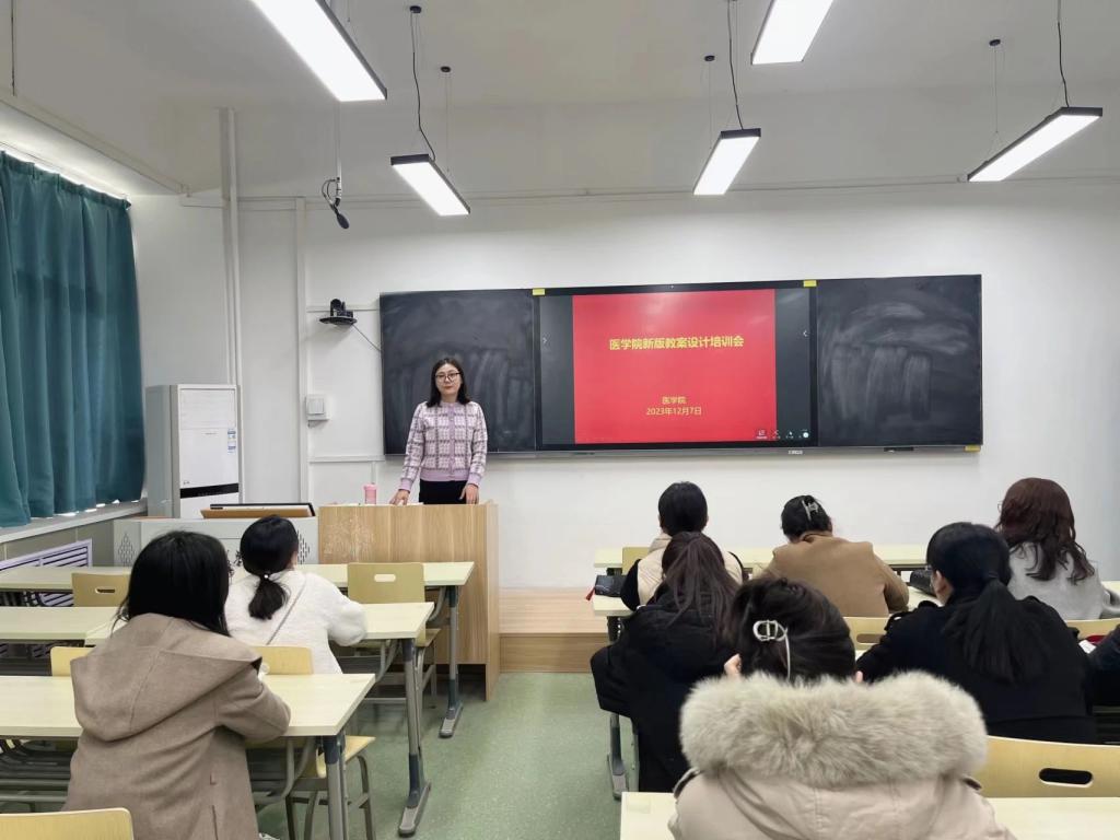为进一步推进本学期本科课程评估工作进程,12月7日,医学院开展本科课程评估部署动员会暨新版教案设计培训会。医学院组织参评教师参加会议,并邀请优秀教师吴建丽进行新版教案设计培训。医学院院长助理闫春生及六十余位参评教师出席参加,活动由郝红英主持。