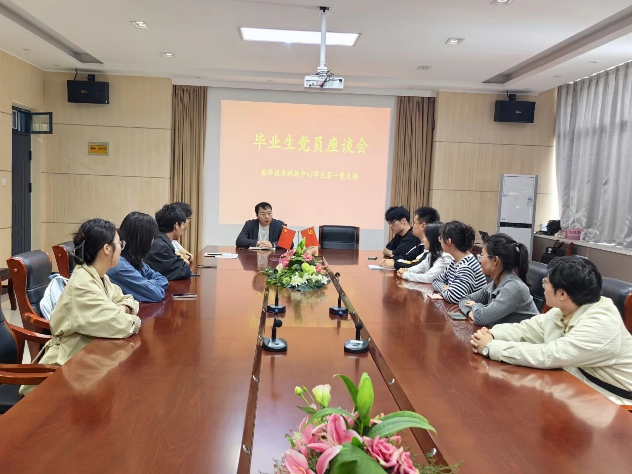 4月11日,医学技术科教中心学生第一党支部在医学院教学楼四楼会议室召开毕业生党员座谈会。党支部书记康玉强、党支部委员刘晓玲以及2024届即将踏上新征程的毕业生党员参加会议,会议由康玉强主持。