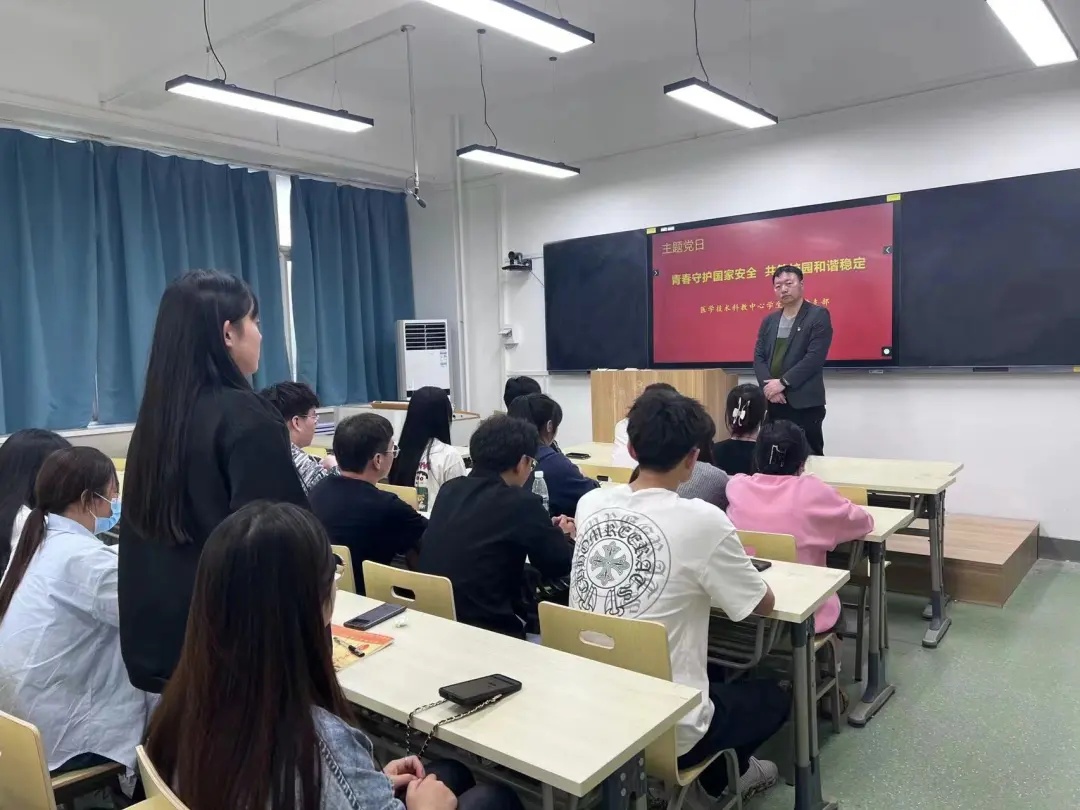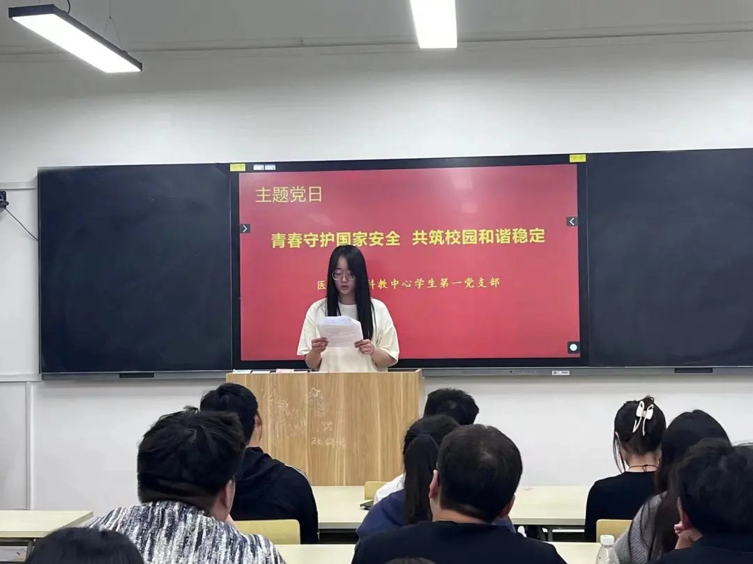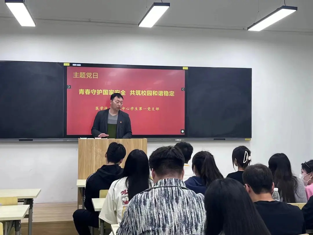 为深入学习贯彻总体国家安全观,增强支部党员国家安全意识和素养,营造维护国家安全的浓厚氛围,4月15日,在第九个全民国家安全教育日来临之际,医学技术科教中心第一学生党支部开展“青春守护国家安全,共筑校园和谐稳定”主题党日活动,党支部全体党员参与活动。活动由支部书记康玉强主持。