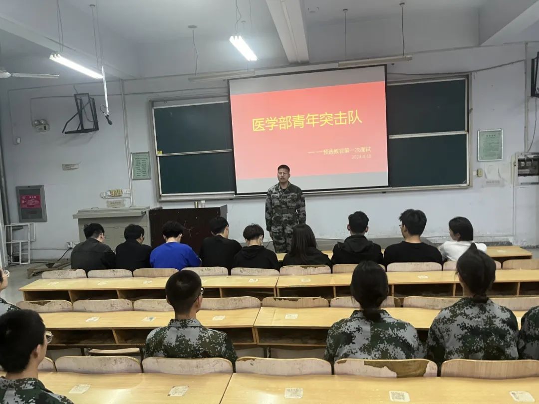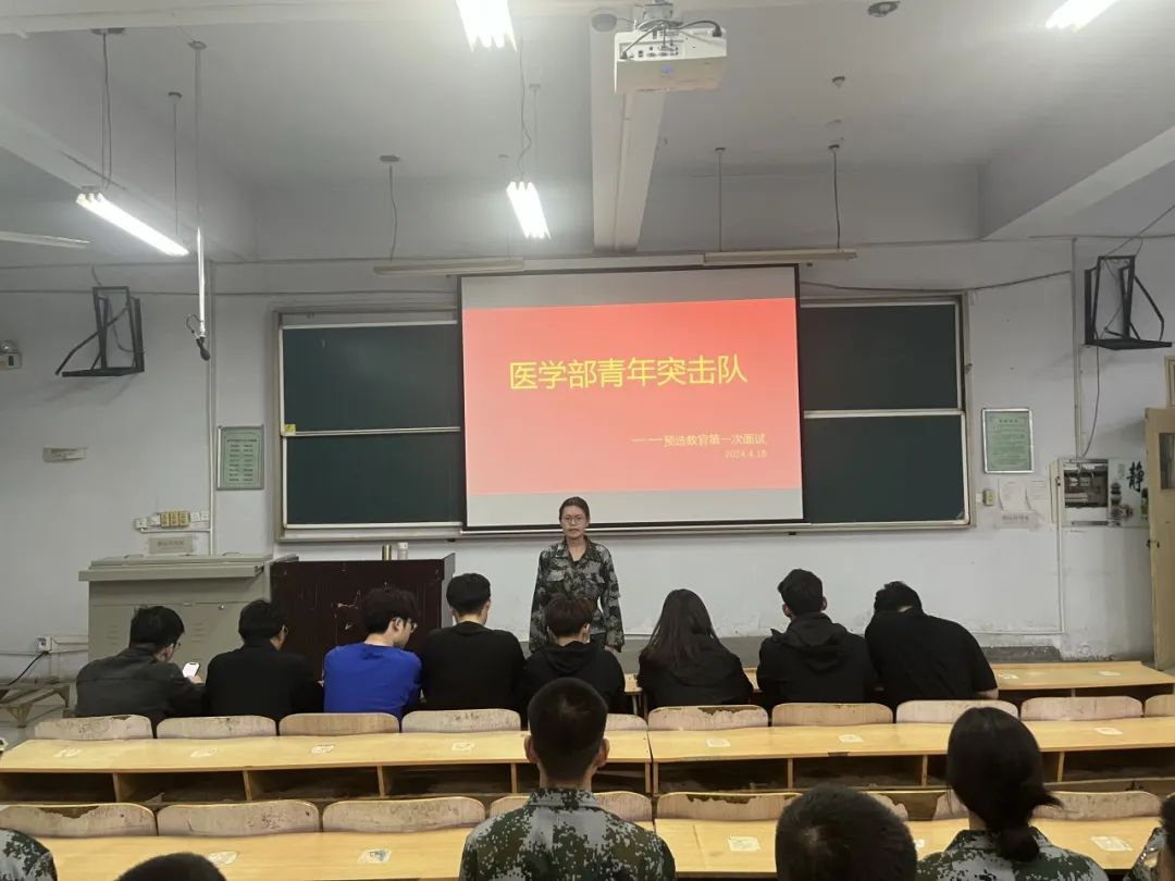 4月18日,古天乐太阳集团城青年突击队于行东四开展2024级预选教官面试工作。22级教官代表、各科教中心突击队大队长担任本次面试工作的面试官,活动由23级教官队长李烨璇主持,全体预选教官参加。