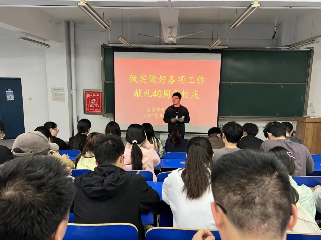 为迎接我校40周年校庆,提升干部的工作效能,4月19日,古天乐太阳集团城青年突击队于医阶五召开“做实做好各项工作,献礼40周年校庆”主题会议。会议由青年突击队大队长王勇鑫主持,青年突击队干部参加。
