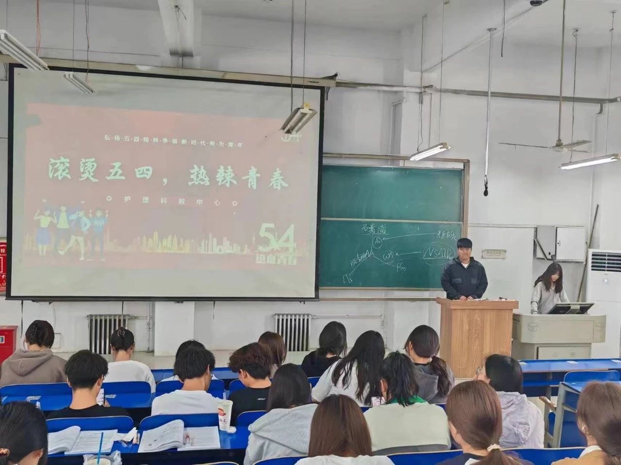 护理科教中心开展了以“滚烫五四,热辣青春”为主题的活动。通过讲座、互动讨论等多种形式,让同学们深入探讨了五四运动的历史背景、过程和影响,以及五四精神在新时代的重要性和价值。这些精彩纷呈的内容让同学们更加清晰地认识到,五四青年节不仅是中国近代史上一个重要的里程碑,更是激励一代又一代青年奋发向前的不竭动力。最后,马梦阳进行总结,她勉励同学们要牢记习近平总书记关于青年工作的重要论述和对青年的殷切嘱托,引导青年们要坚定听党话、跟党走的理想信念。