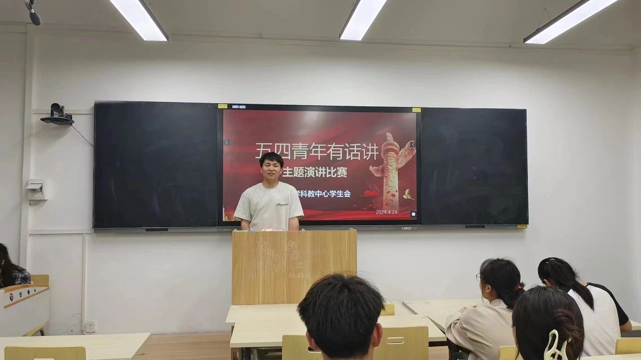 药学科教中心学生会开展了以“五四青年有话讲”为题的演讲比赛。比赛现场,学生会主席李乐乐向同学们介绍活动背景、目的及流程,接着,参赛者按照抽签顺序依次上台演讲。各选手围绕主题进行了精彩纷呈的比拼,同学们情感充沛、见解独到,他们用自己的经历和见闻阐述着对五四精神的理解和传承,充分展现了青年学子志存高远、勇于奉献的责任担当和踔厉奋发、拼搏进取的精神风貌。最后,李乐乐对本次活动进行总结,鼓励他们继续弘扬五四精神,书写无悔青春。