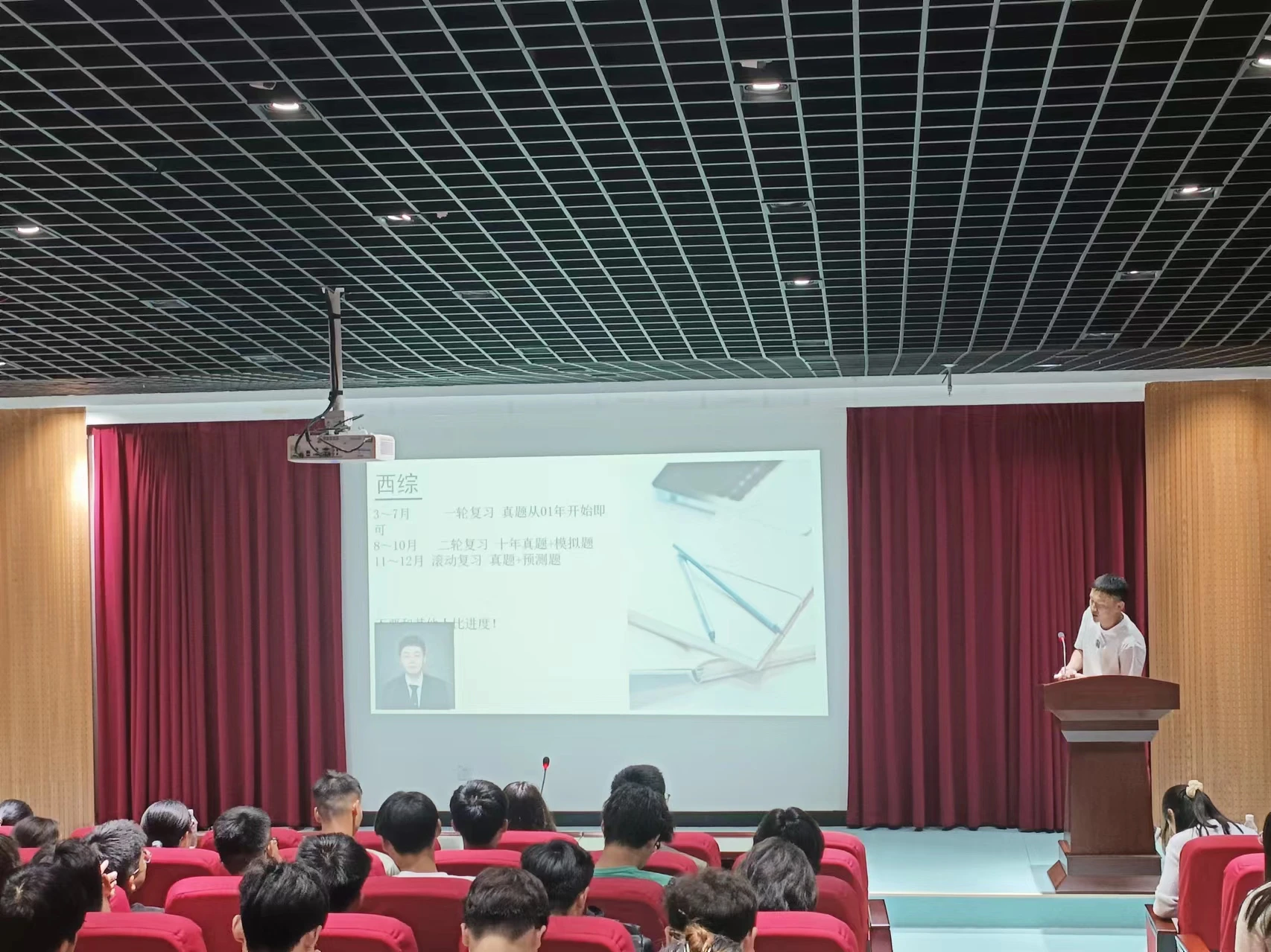 会上,马社敏就2019级考研情况做了分析与说明,并对在场考研上岸学生进行介绍。随后,由考研上岸的学生:王翔龙、刘梦情、刘熙鸣、曹文龙、王燕辉结合自身经历分享考研经验,他们以考研报考流程入手,重点向同学们分享了专业课复习的方法和途径,以及英语和政治的学习备考方式。