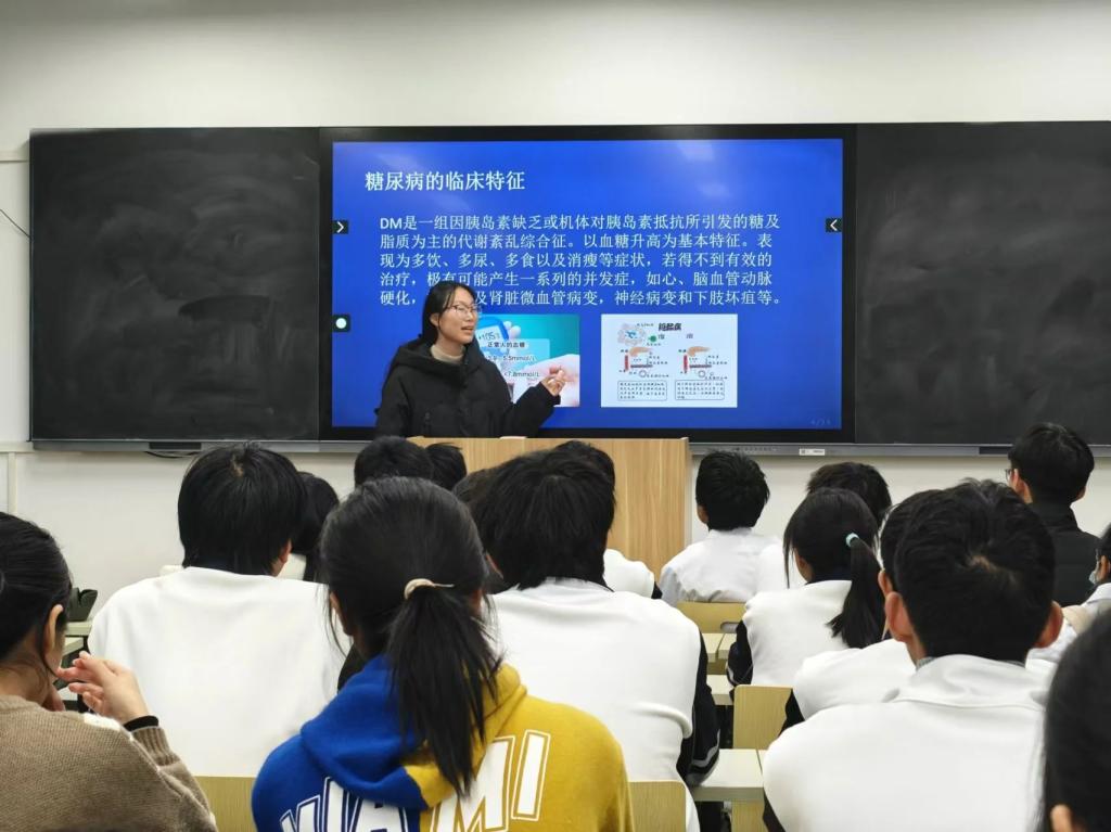 在宣讲会上,翟雪茹详细讲述了糖尿病的机制、症状、预防与治疗等方面的知识。她用通俗易懂的语言,使新生们对糖尿病有了更深入的了解。翟雪茹指出,糖尿病是一种常见的慢性疾病,我国糖尿病发病率逐年上升,加强糖尿病防治知识的学习至关重要。同时,宣讲员与学生们进行了积极的互动。新生们纷纷举手提问,表现出浓厚的学习兴趣。翟雪茹耐心解答了同学们的疑问,让大家对糖尿病的防治有了更加清晰的认识。