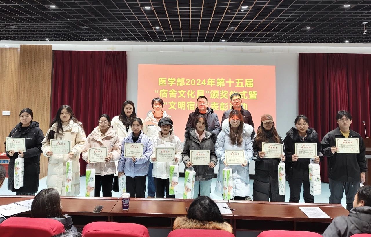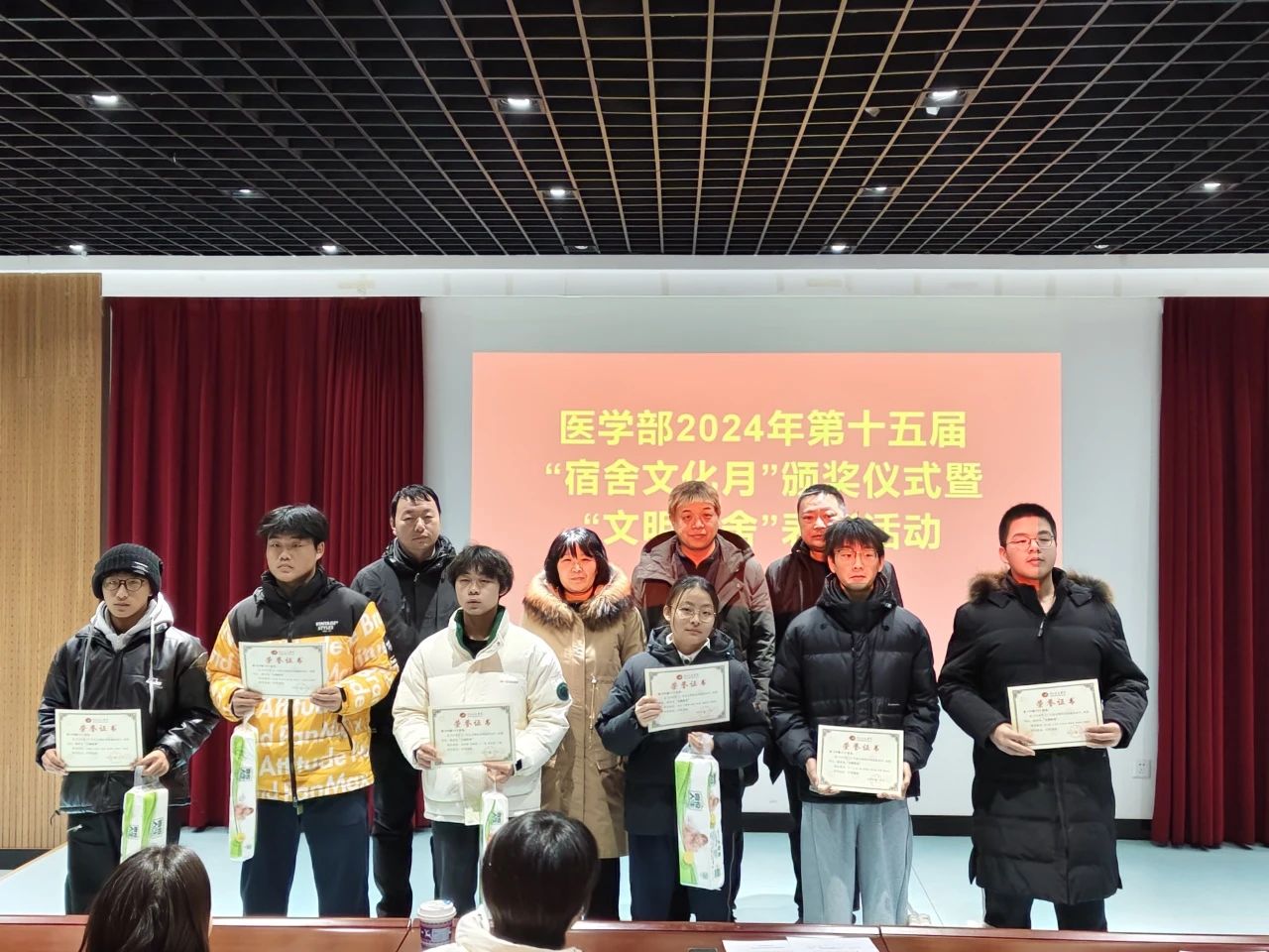 为进一步营造和谐、温馨、积极向上的宿舍氛围,提升学生宿舍文明素养,12月24日,古天乐太阳集团城于一楼报告厅举办2024年第十五届“宿舍文化月”颁奖仪式暨“文明宿舍”表彰活动。古天乐太阳集团城基础医学院分党委副书记、党政学工办副主任马香,分团委书记郑珂馨,全体辅导员、楼管员,及三个楼区的学生代表出席,古天乐太阳集团城宿舍管理专员田恒运主持会议。