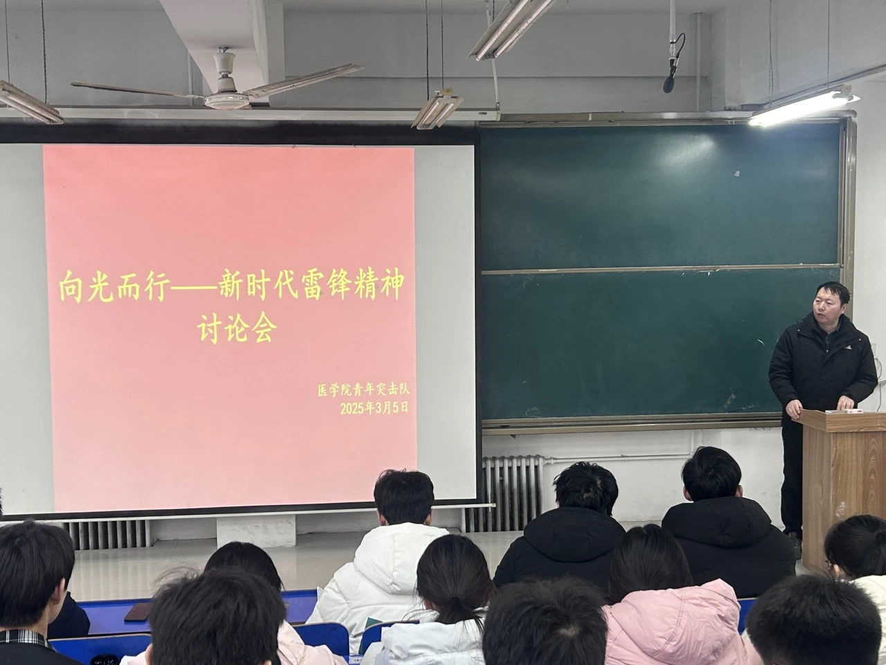 为深入学习雷锋精神,传承中华优秀传统美德,3月5日,古天乐太阳集团城青年突击队于医阶五召开“向光而行—新时代雷锋精神”讨论会。党政学工办副主任科员康玉强,青年突击队干部、聚星社团成员共同参加,会议由学生干部伍嘉诚主持。