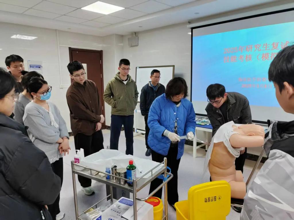 模拟考核开始前,分别由张楠、杨娟、冯苛详细讲解内、外、妇儿各学科里常规的技能操作项目的重难点和注意事项,接着带领考生分组进行实操练习。在临床技能操作模拟考核环节,考生们需要严格按照评分标准完成如体格检查、触诊、心肺复苏、四大穿刺、缝合、换药、导尿术等常见临床操作。评委老师们不仅关注操作的规范性,还注重考生的应急处理能力和人文关怀意识。病例分析环节则考验考生的临床思维和诊断推理能力,考生需根据提供的病例资料,迅速做出诊断并提出合理的治疗方案。考核结束后,由主考官和评委对考生的表现进行点评,评委们对考生的优点予以肯定,同时针对不足之处提出了中肯的建议。考生们纷纷表示,通过这次模拟考核和评委点评,他们对考研复试有了更清晰的认识和更充分的准备,也发现了自身存在的问题,为接下来的复习指明了方向。