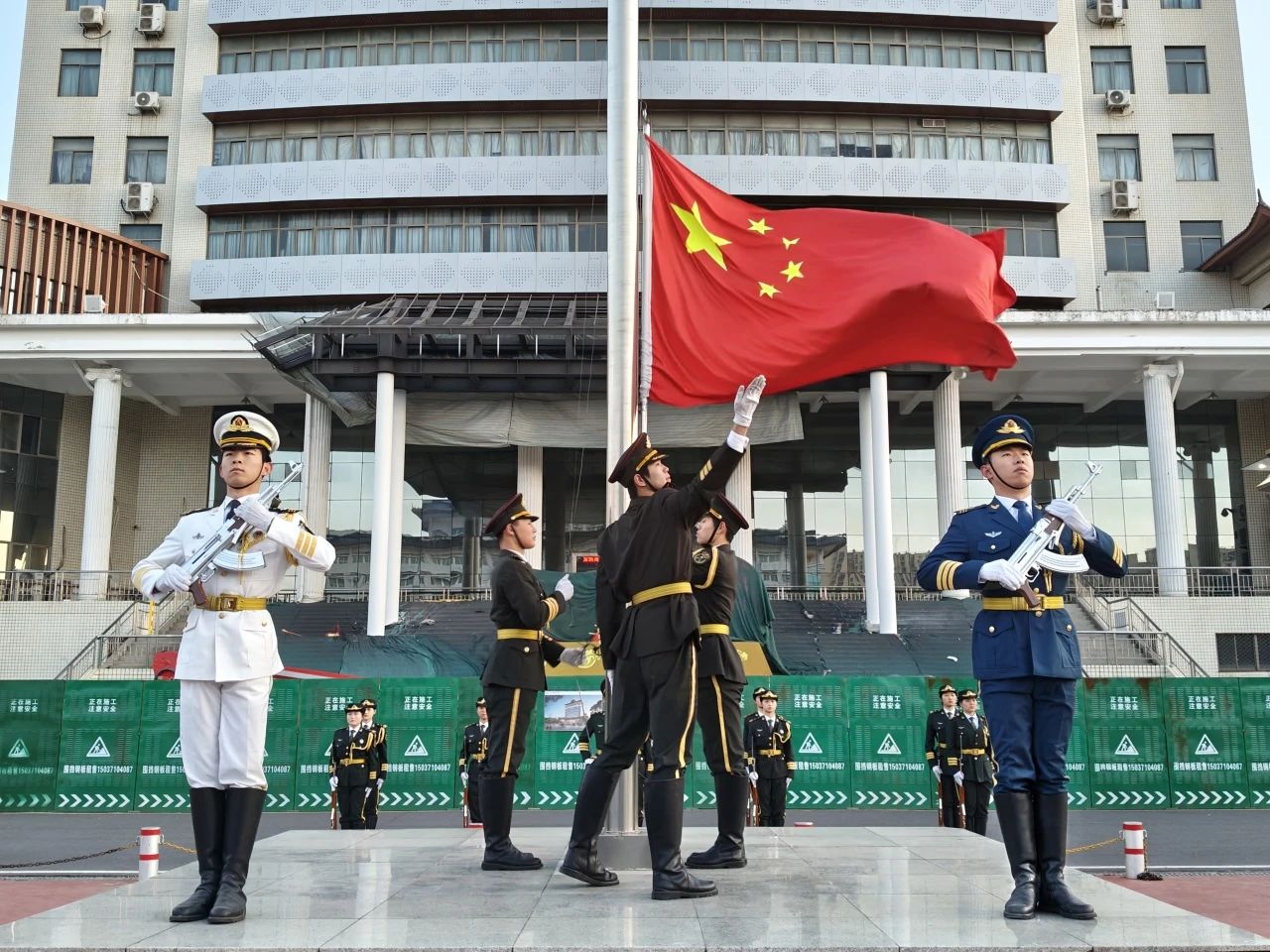 伴随着国旗护卫队矫健的步伐,鲜艳的五星红旗缓缓升起,全体师生齐唱国歌,雄壮的旋律中饱含着对祖国的深情与敬意。