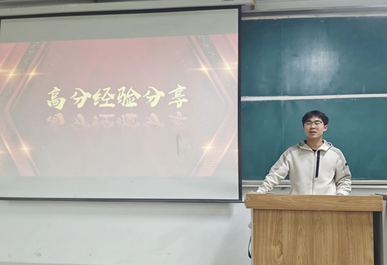 会上,赵岩岩结合近年来本专业考研的实际情况向同学们强调了持续学习英语的重要性,并向通过四级的同学表示祝贺,鼓励尚未通过的同学以他们为榜样,制定合理的学习计划,积极备考。在表彰环节,赵岩岩宣读高分通过四级的学生名单,为他们颁发荣誉证书和小礼品,激励同学们不断奋进,现场气氛热烈。在经验分享环节,八位高分通过四级的同学上台分享备考经验,从词汇、听力、阅读、写作以及心态调整等方面,详细介绍备考方法与实战技巧,着重强调了良好心态和合理进行时间管理的重要性。