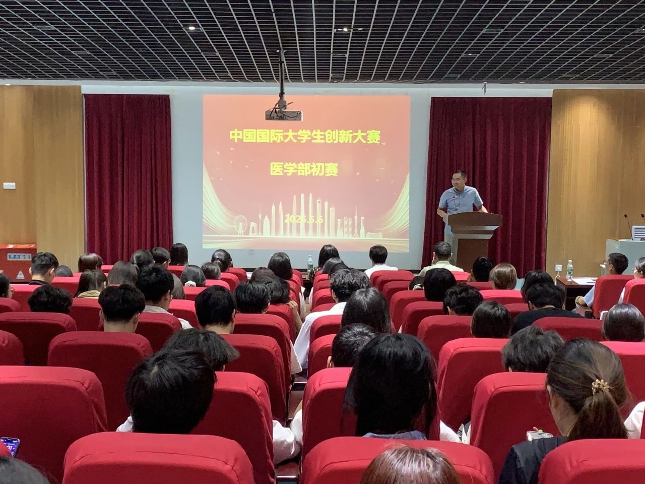 会上,闫春生发表致辞。他表示,中国国际大学生创新大赛是青年学子展现创新才华的重要平台,希望同学们以敢想敢为的勇气突破思维局限,将课堂知识与社会需求深度融合,同时注重团队协作,在跨学科交流中激发创新活力。他特别强调,医学创新应立足实践,既要关注技术突破,也要重视成果转化对社会发展的实际价值。