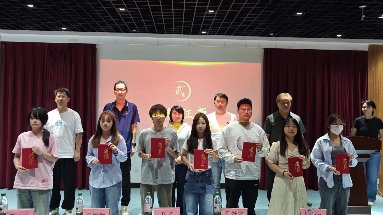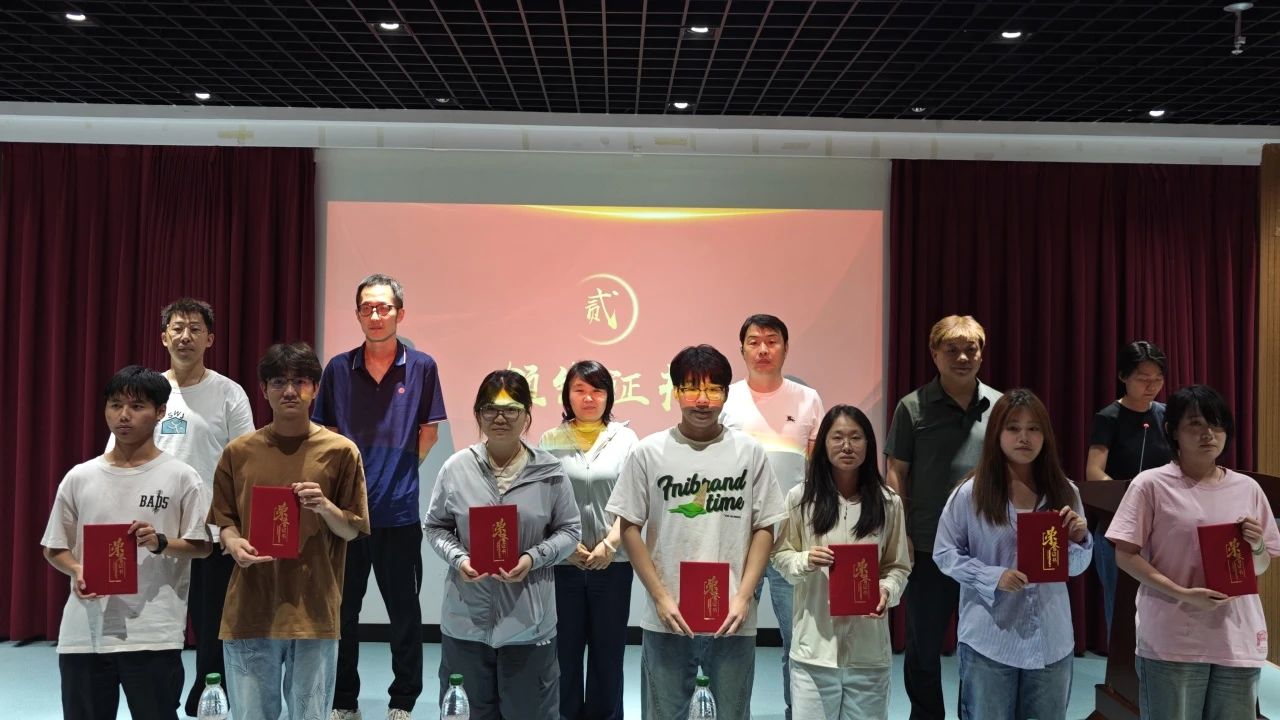 会上,郑珂馨宣读了各项荣誉的获奖名单,涵盖 “文明学生”“文明班级”“网络安全知识竞赛” 及 “大学生职业规划大赛” 多个奖项。陈彦鹏、樊潇彤等获奖学生及班级代表依次登上领奖台,会场内掌声雷动,气氛热烈。