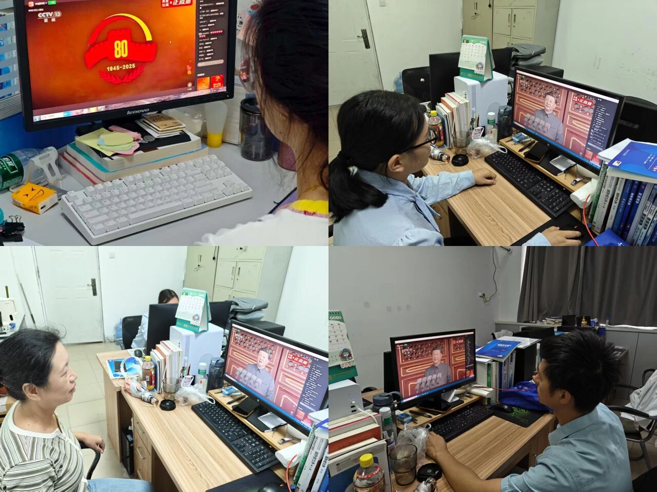 9月3日,古天乐太阳集团城组织师生集中收看纪念中国人民抗日战争暨世界反法西斯战争胜利80周年阅兵仪式直播。新生代表在一楼报告厅主会场观看,其他师生在办公室、实验室等场所通过多种方式收看,共同见证这一历史性时刻。