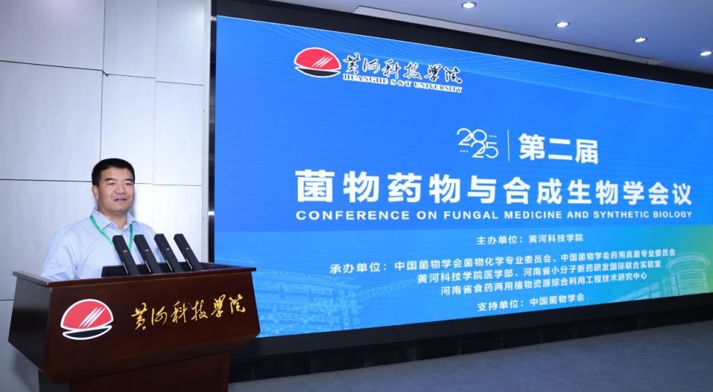 开幕式上,李喜强宣布会议开幕。他代表主办方和大会组委会,向远道而来的各位专家、学者、嘉宾和参会代表表示最热烈的欢迎,向为本次会议辛勤付出的主办单位、承办单位以及全体工作人员致以衷心的感谢。他倡议以菌物为媒、以科技为桥,在交流中增进共识,在合作中共谋发展,为推动我国菌物药物研发与合成生物学应用贡献智慧和力量。