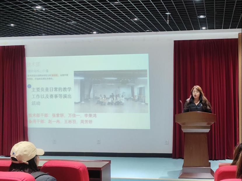 首先,郑珂馨对新成员的加入表示热烈欢迎,阐述了街舞社在丰富校园文化、促进跨年级交流中的重要意义。她鼓励社团以舞蹈为媒介,搭建沟通桥梁,激发更多青春活力,为校园文化注入多样色彩。随后,社团技术部、宣传部、后勤部三个部门的负责人依次上台,详细介绍了各部门的主要职责与工作规划。最后,社团成员们踊跃上台自我介绍,纷纷表示将积极参与社团训练与活动,为社团发展贡献自己的力量。