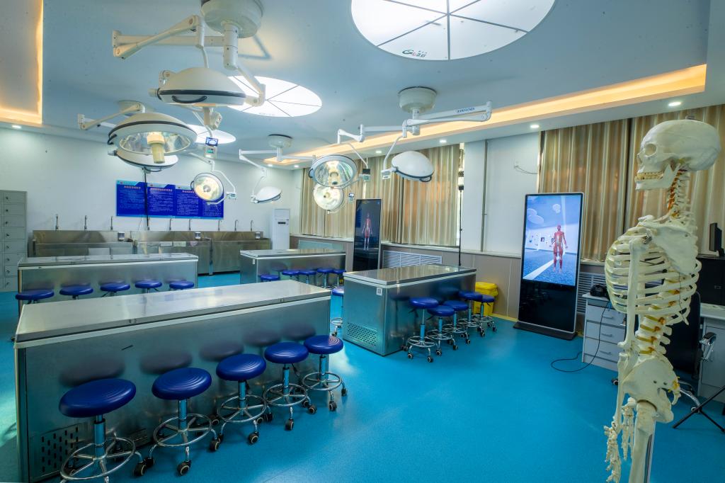 人体解剖学虚拟仿真实验室建筑面积75㎡涵盖了系统解剖学、局部解剖学和断层解剖学三个模块。3D-Body数字解剖系统是一个以人体的CT/MRI扫描数据为基础,全面准确的三维立体解剖学数据库,全面汇集了人体所有系统和器官的高精度三维动态互动式解剖模型,具有直观、清晰和多点投射等特点,能极大提高解剖学实验效果。