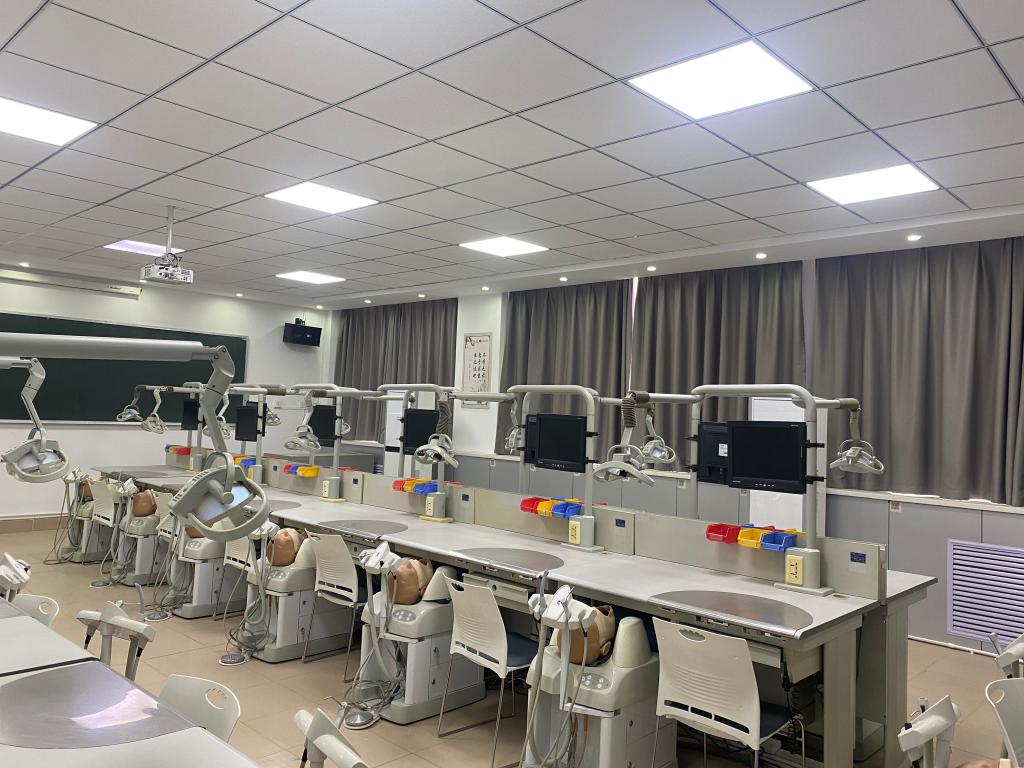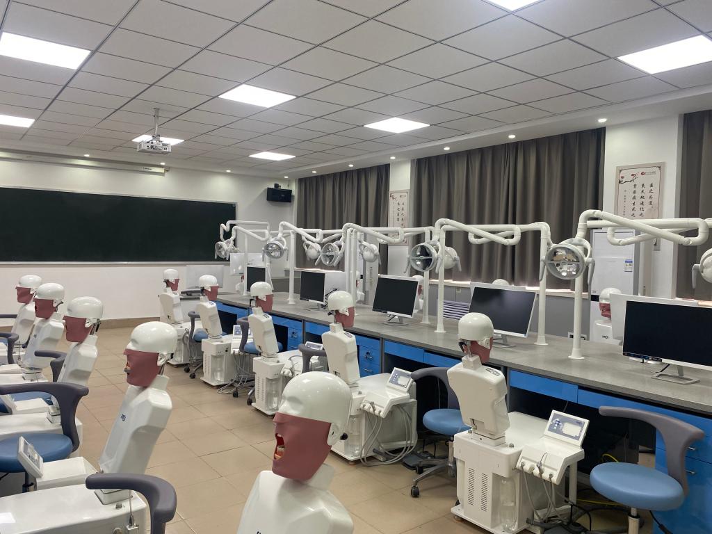 口腔医学实训室配备有口腔显微教学系统、仿头模教学系统、 数字化多媒体教学系统、口腔实训教学标准化评估系统等相关设备,该系统把LED照明系统、视频系统、口腔软件系统、操作控制系统集成于一体,为口腔实训带来高效工作模式。结合LED光源及高放大倍率的镜头,提供了开阔的诊疗视野及清晰有效的视图,操控缩放功能可自动对焦;基于计算机的网络化设计,可实现多显示器及视频的数据远距离传输,直播或转播教学过程及手术的典型案例。同时该系统,具有视频信号采集、录制、抓拍、全屏、镜像、截图等功能。为口腔实训教学提供极大的方便性与使用性。