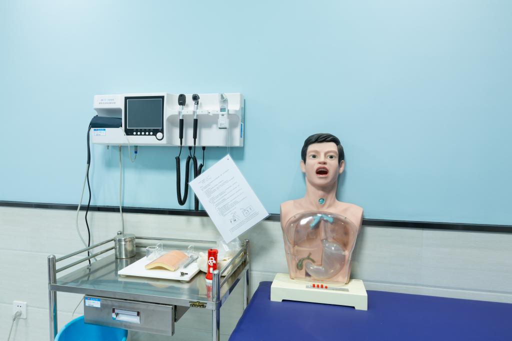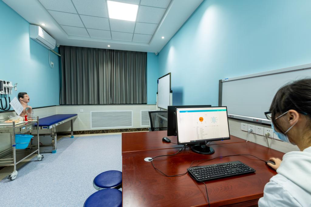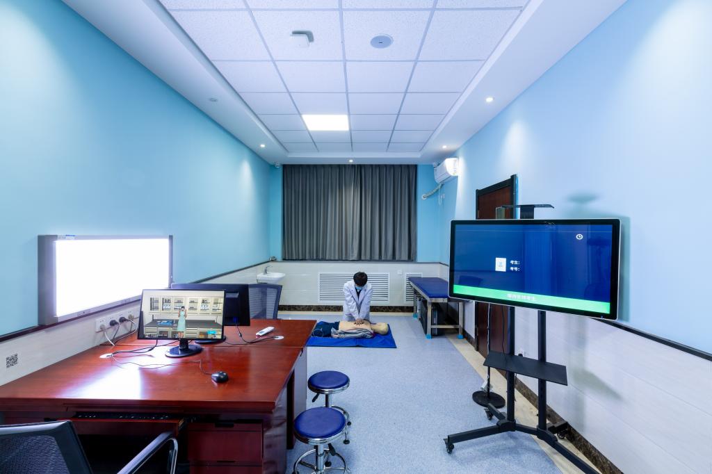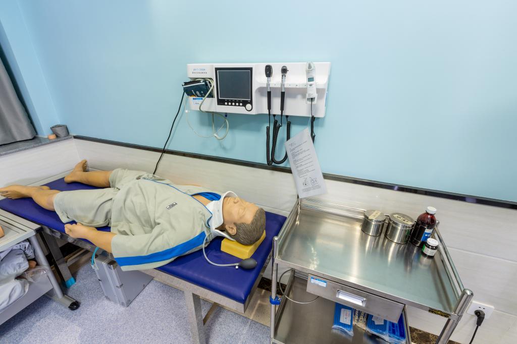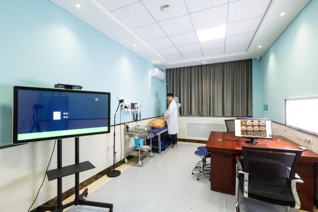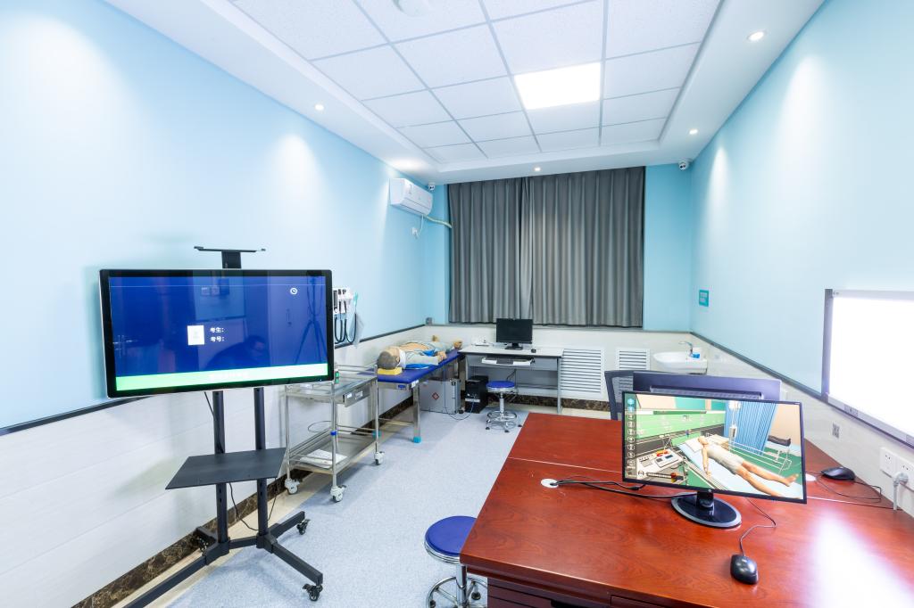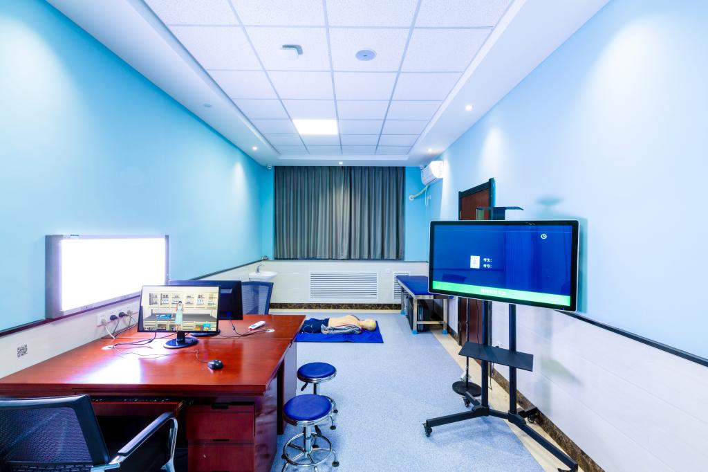 OSCE考站共占326.3㎡。OSCE考站目前承担医学院临床医学、护理学等考试30余场(其中包含临床医学专业水平测试);对临床医学、护理学专业开放实验室模拟练习(含有鼻饲术、电除颤、吸痰术、胸腔穿刺术、腹腔穿刺术、腰椎穿刺术、骨髓穿刺术、男性导尿术、女性导尿术等训练项目);目前实验室承担的项目有《导尿术智能在线训练项目》、《多场景院前急救智能在线训练项目》等。
