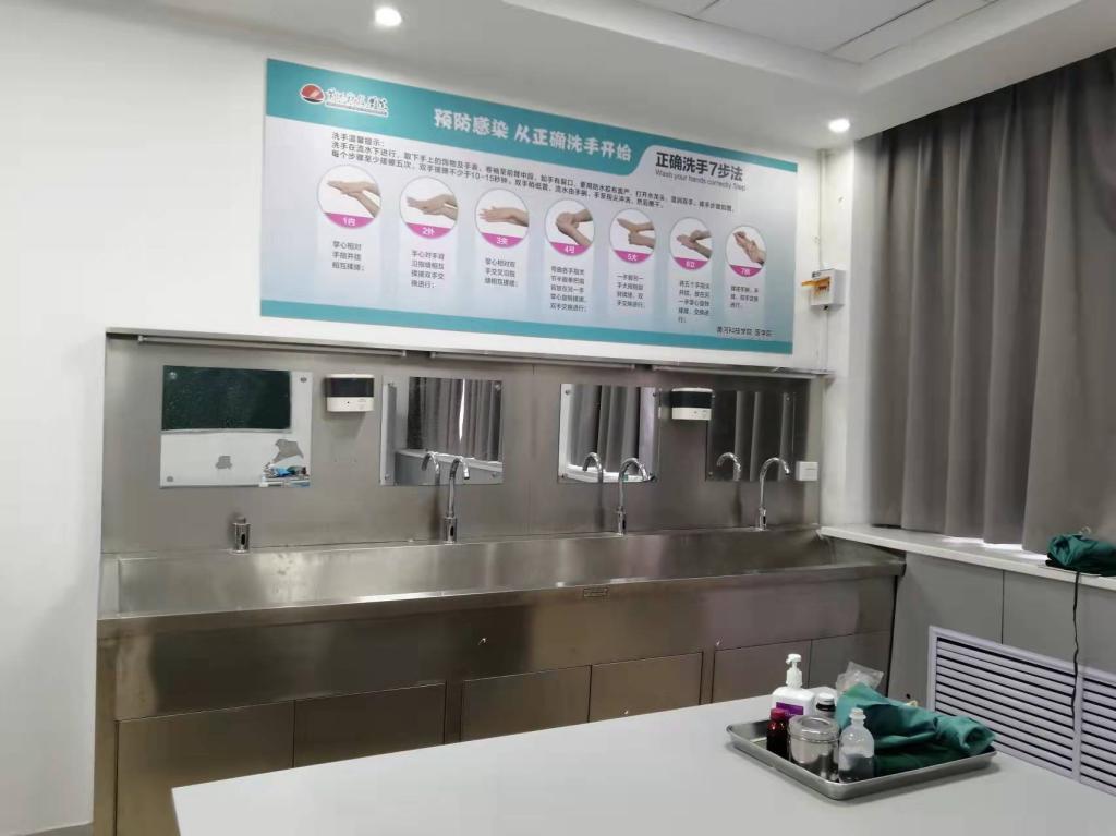 无菌操作室占地面积约100m2,主要承担护理学等专业课程中无菌操作技术的教学和考核任务。无菌操作室包括两个实验分室,配备有操作台、无菌盘、无菌容器等操作用物,可供学生练习铺无菌盘、取用无菌物品、戴脱无菌手套等各项操作。护理专业学生通过在本实验室进行相关操作技能的练习,能够较为熟练的掌握无菌技术。